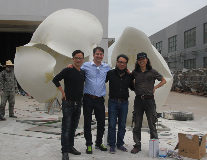 南京先登雕塑不銹鋼雕塑作品《天使之吻》創作完成,歐洲特使尼古拉斯到訪中國表示祝賀,尼古拉斯對該作品所傳達愛的巧妙構思和極具現代古典主義感染力的創造表示高度贊賞。該作品由著名雕塑家郭愛軍和鄭德東教授首度聯合創作,兩位藝術家對雕塑《天使之吻》作品在通過用抽象了的玫瑰花瓣構筑的作品醞釀多年,幾易其稿。作品通過生命張力的美好形象,讓觀眾對愛的憧憬,寄予浪漫的期許和想象。為江蘇洋河農業嘉年華——愛情主題館點燃了愛的浪漫火焰。